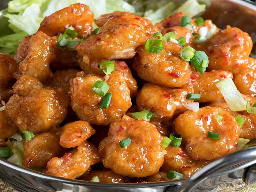 - Once the oil is back to 350 degrees F, cook the second half of the shrimp and toss with the remaining sauce.