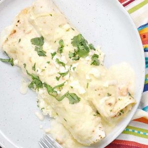 - Roll up each enchilada and place it seam side down in the prepared baking dish, set aside.